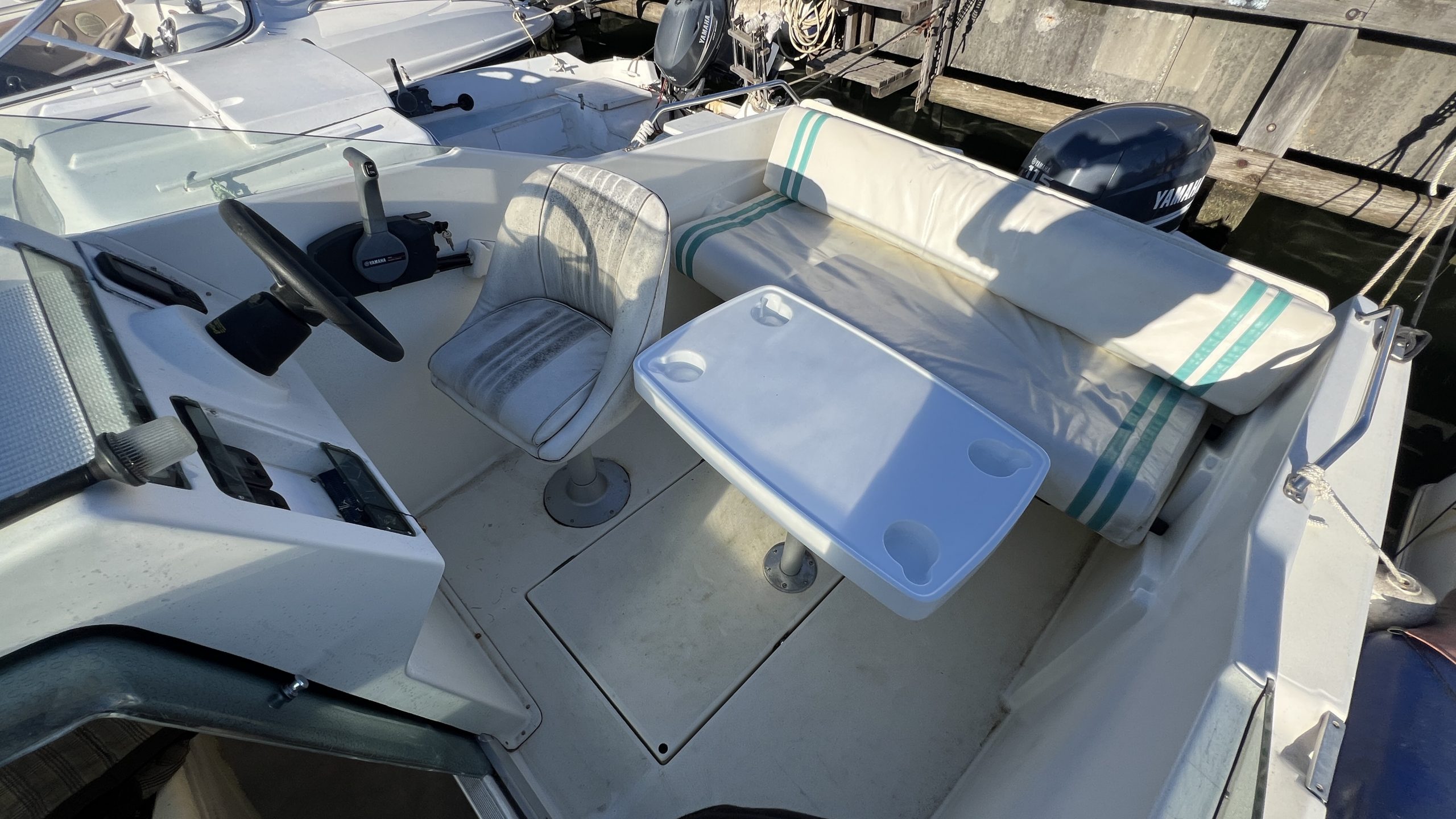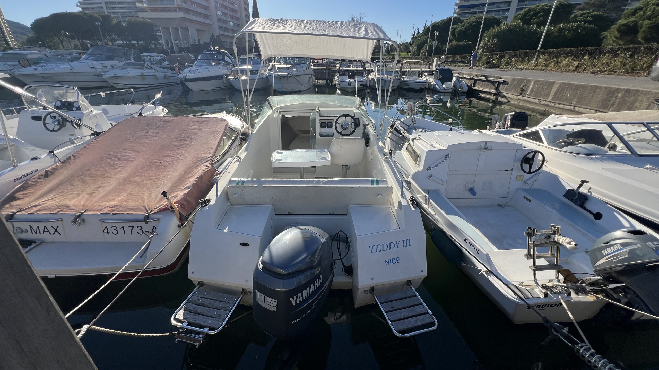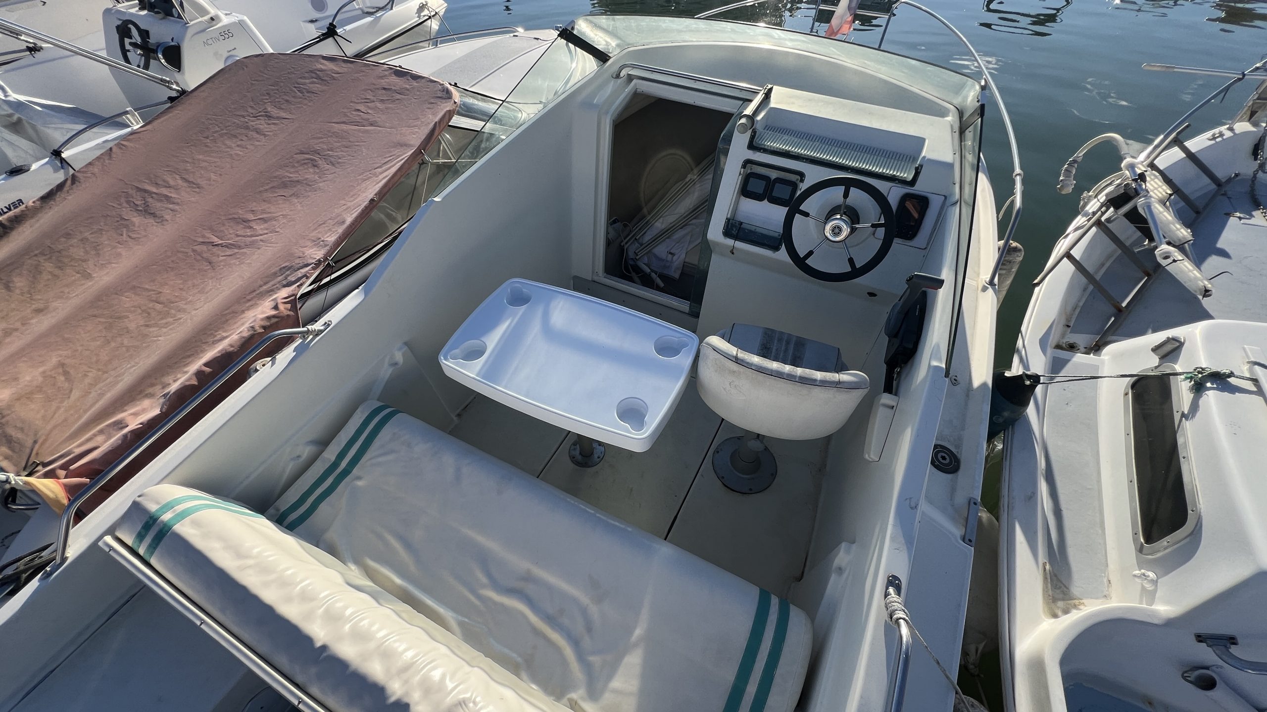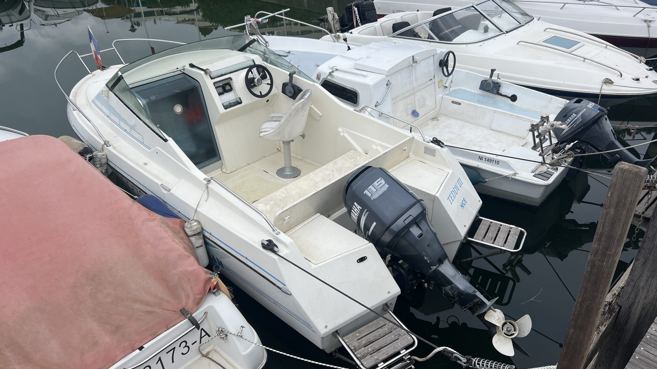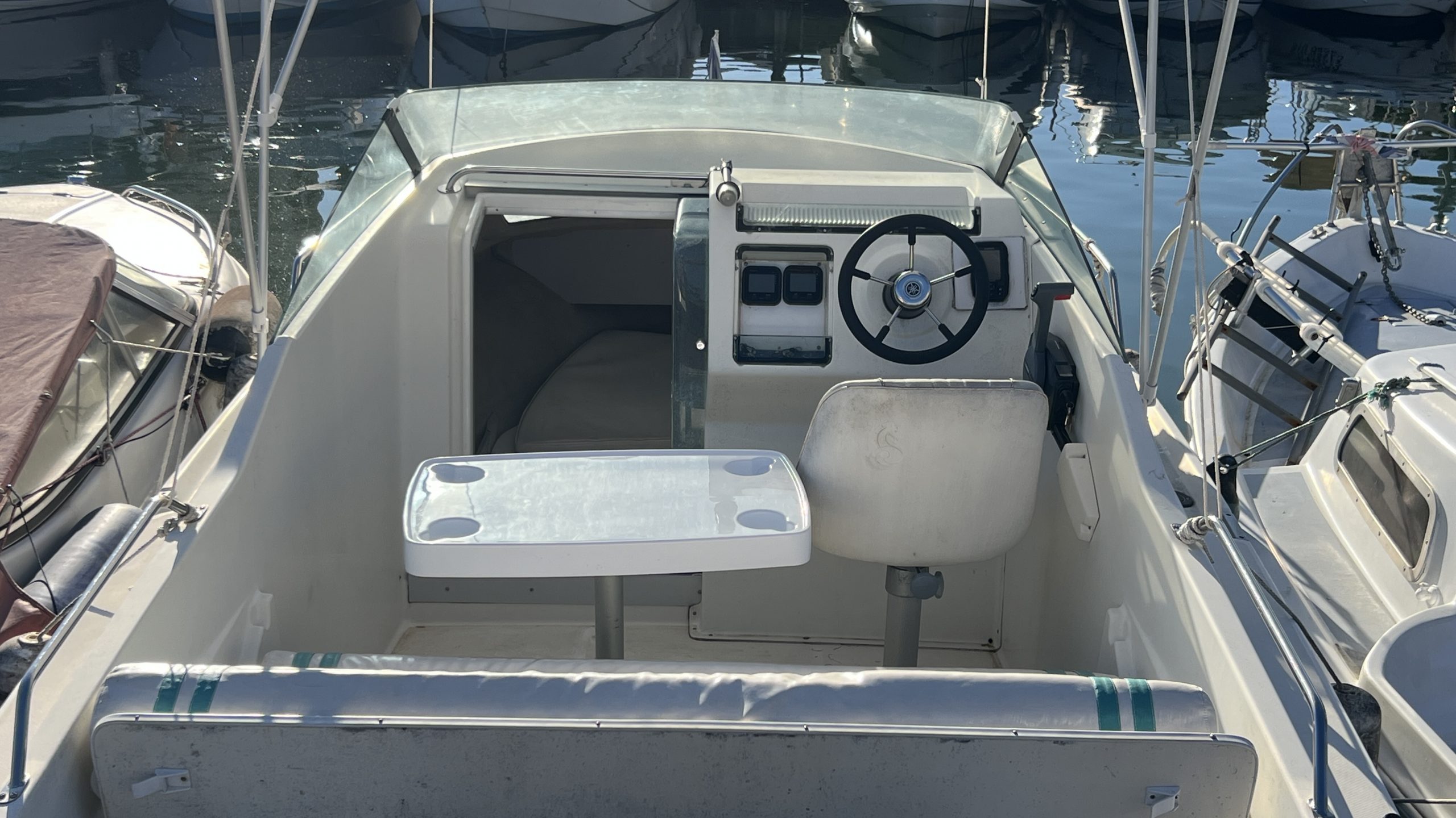 Bateau pour 6 personnes a bord. Bain de soleil arrière, taud de soleil, GPS/sonde, douche d’eau douce, cabin 2 personnes, table de pique nique, échelle….