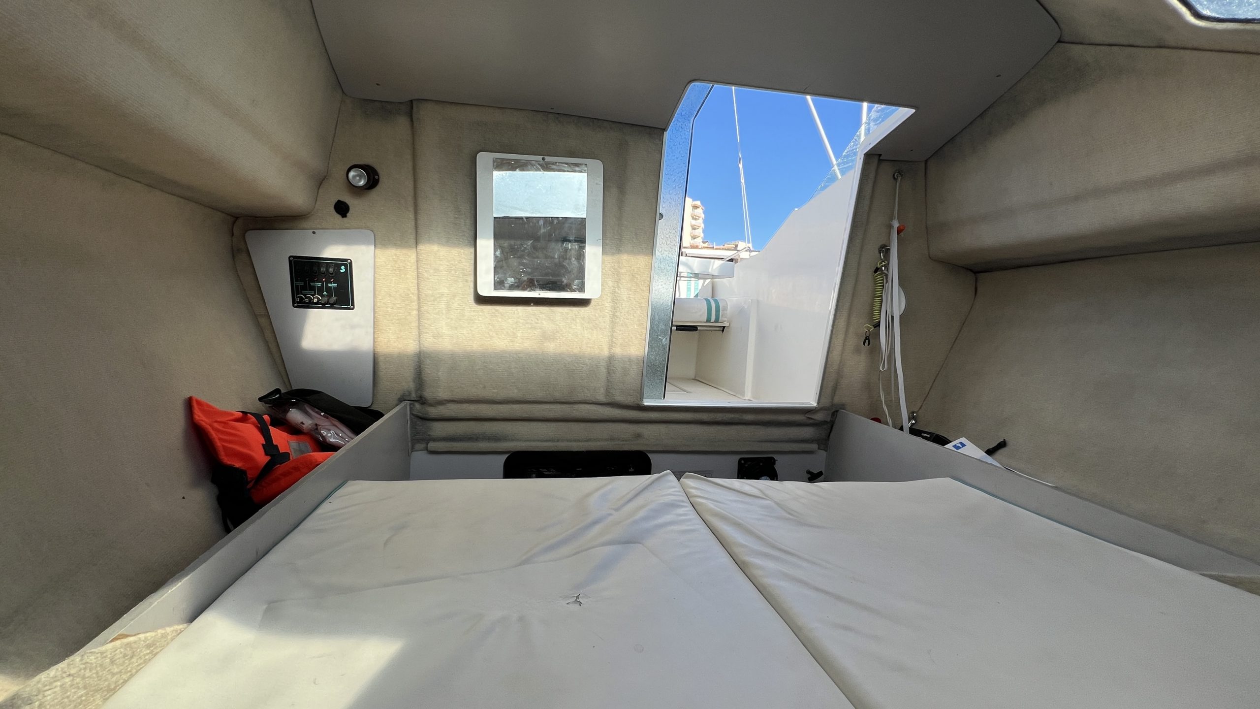 La sellerie est en bon état et beaucoup de storage a bord pour vos affaires et son large cabin pour dormir à 2 sans problème.